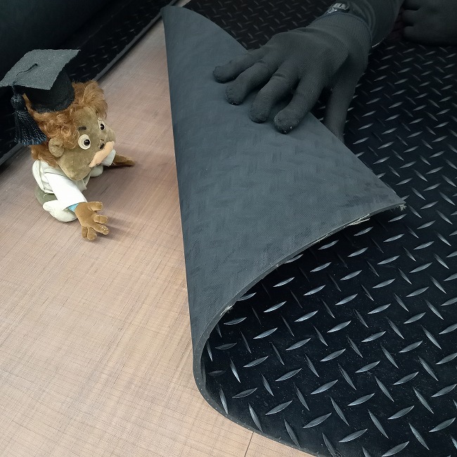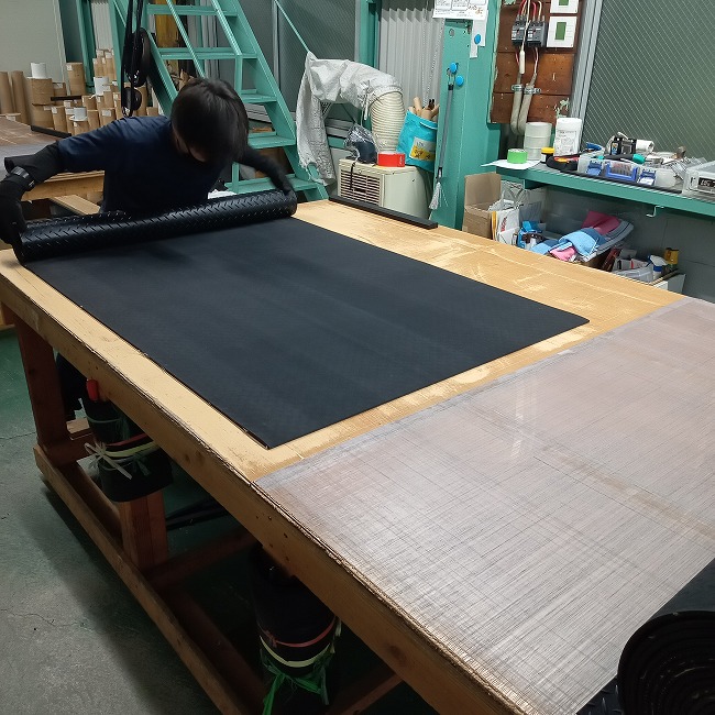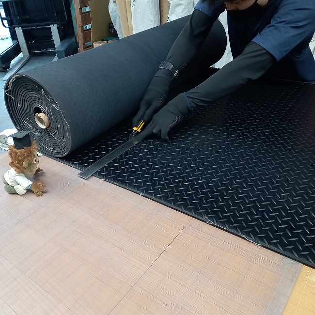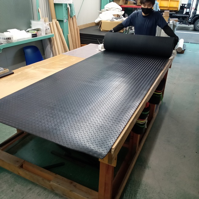 一般的なゴムシートは両面ともに平滑な面が基本です。しかし、滑り止め効果を増すためには何かしらのパターンがある方が良いのです。(条件にもよります)