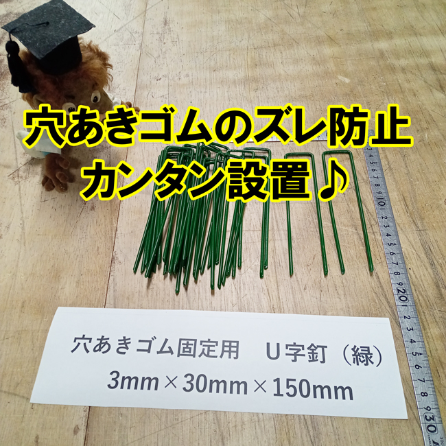 穴あきゴムのズレ防止にU字釘 カンタンに設置できます!