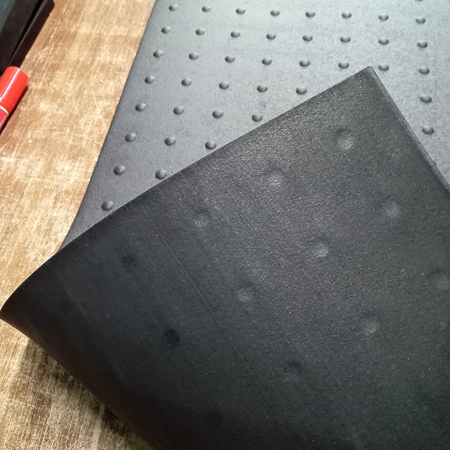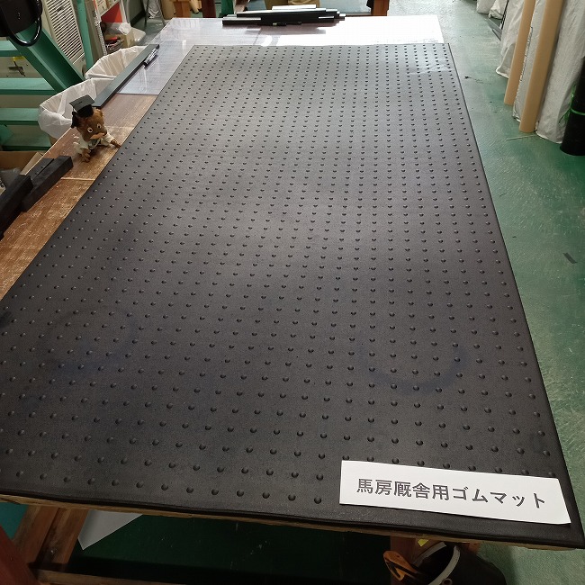 柔らかいスポンジのようなクッション性では馬の重量を支えられずかえってストレスになりかねません。そのため硬すぎず柔らかすぎないゴムマットを選択しました。