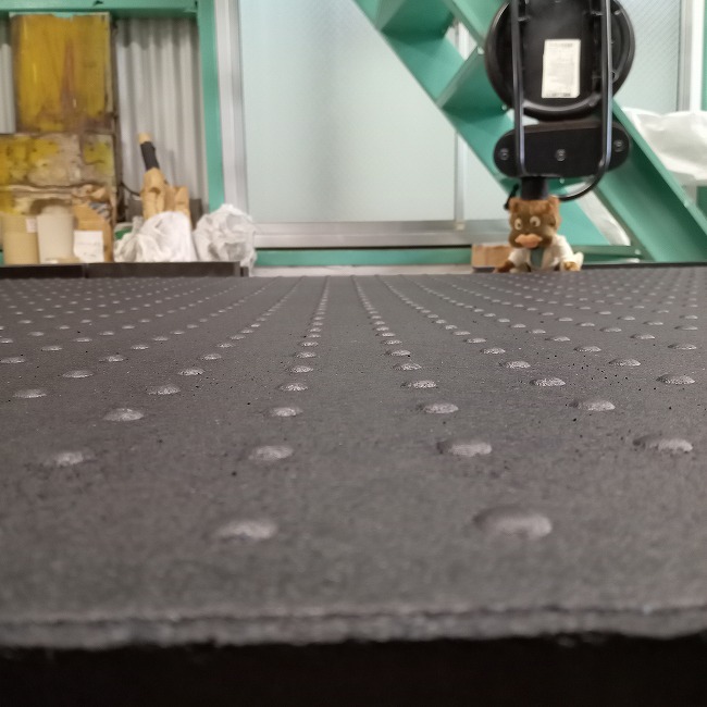 現場でカットが必要な場合には施工会社さんに依頼してカットと敷き詰めをお願いすることになりますが、ゴムシート.comではカットをした状態でお届けしますので、現場で敷き詰めるだけで終わります。寸法計測のお手間はありますが、工事不要なので圧倒的なコストカットが可能です。