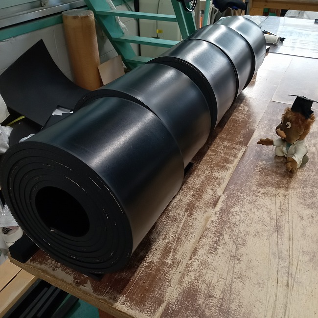 カッターナイフなどでも切れるのですが、長尺のゴムを幅カットするのは想像よりも大変で時間がかかります。現場でしかできないことはたくさんあると思いますので、ゴムの寸法切りは私たちにお任せいただければと思います。