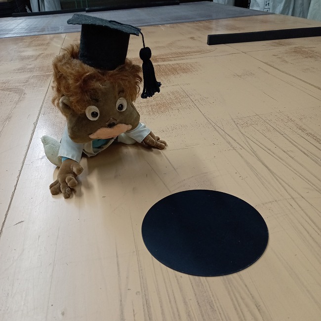 専用の機械を使って切っています。手にカッターナイフを持って慎重に切っても絶対にきれいには切れません。長方形や正方形は少し大きめに納品させていただいて、現場で仕上げカットをされることもあるかと思いますが、円形の場合は実際に使用される寸法でカットのご依頼をいただかないと現場で寸法仕上げができませんのでご注意ください。