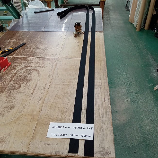 ▼ 1枚の大きなゴムシートから50mm幅にカットしています。