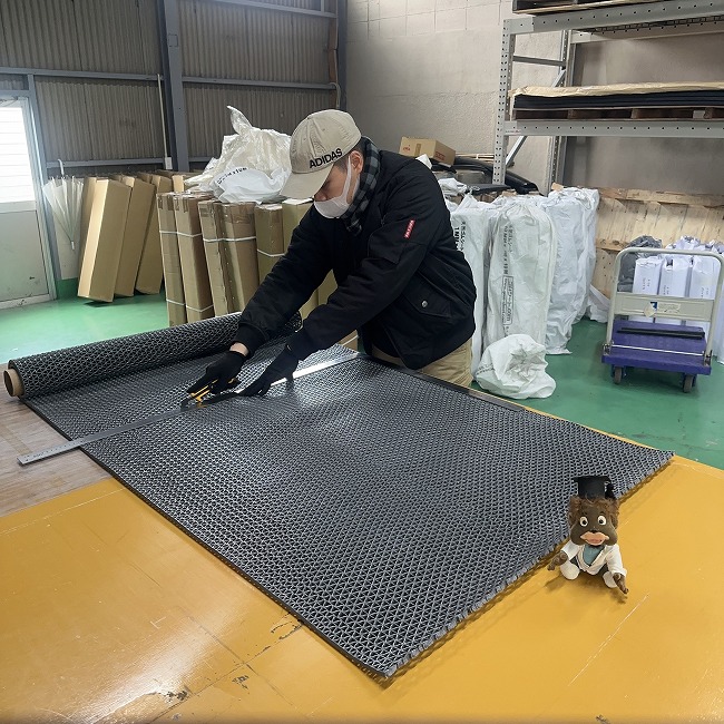 しかし、雨の日は滑りやすいですし、隙間から小銭やカギが落ちると大変です。。。そんなお困りごとにエムエムPVCシートを敷きませんか?というご提案です。