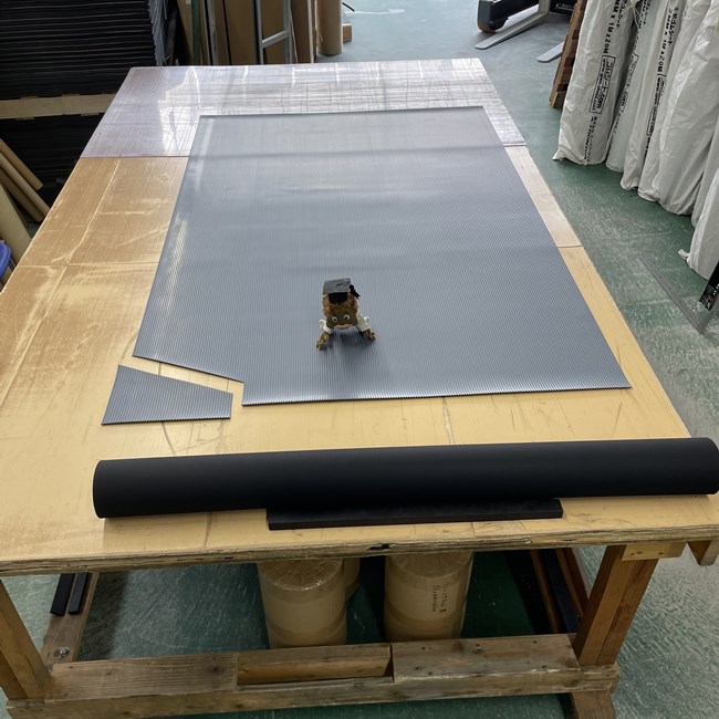 エレベーターマットのご依頼をたくさんいただきます。細かなカットは現場でされる、細かなカットをして納品させていただく、いずれのケースもあります。オーダーカットの場合はまずは手書きで大丈夫ですのでカンタンな寸法図をお送りくださいませ。