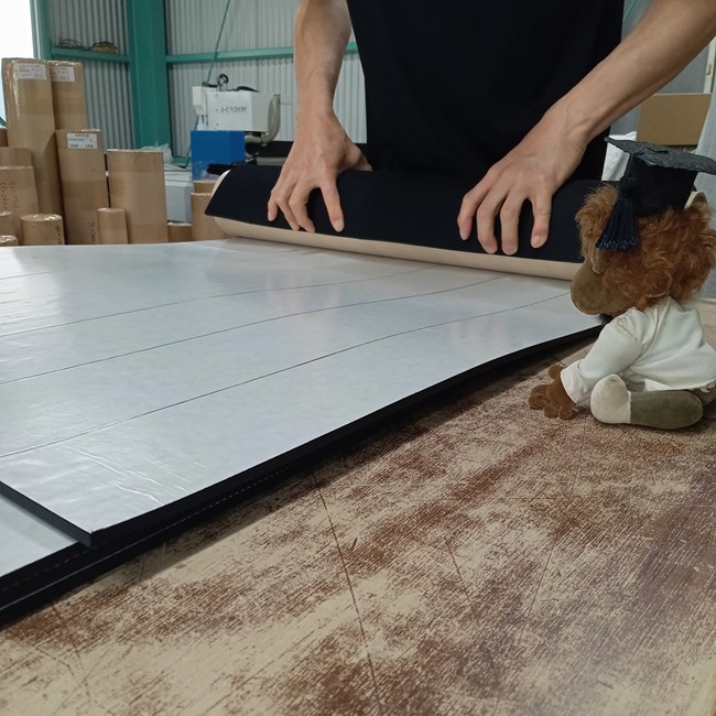 ゴムシートの片面に両面テープ付で納品