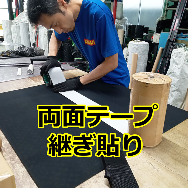 ゴムシートに両面テープの継ぎ貼り