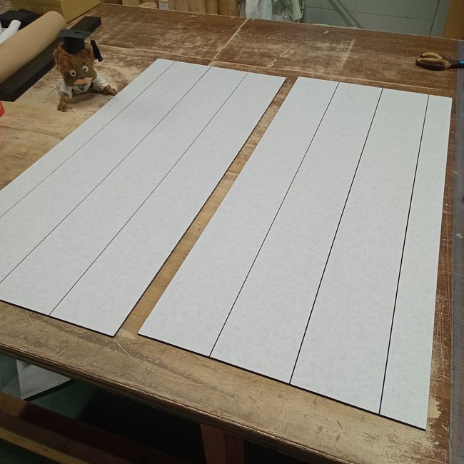 理想は1枚の両面テープなのでしょうけど、ほぼ隙間なく貼り付けて納品しますので粘着力の低下はほとんどないと考えています。剥離紙を何度も剥がすのはお手間ですが、少しずつ剥がしながら少しずつ貼り進めることができるので意外と効率よく作業ができます。全面の剥離紙でも少しずつ剥がせば同様に進められるように思いますが取り回しは少し大変になりやすいです。