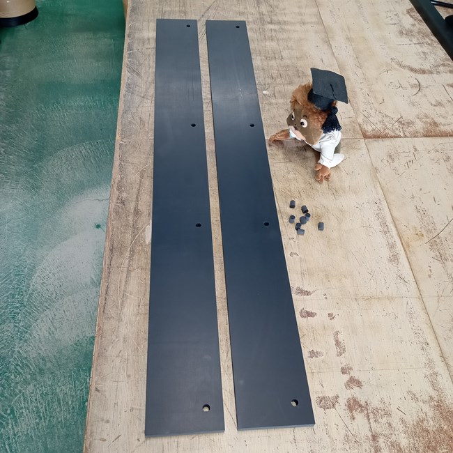 ご指定の位置と大きさでゴムに穴あけが可能です。穴位置はカンタンな手描図があると助かります。ボルト穴の場合、ボルト径よりもわずかに大きな穴をご指定いただくと現場作業がスムーズになるかと思います。