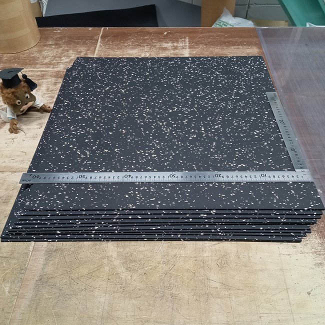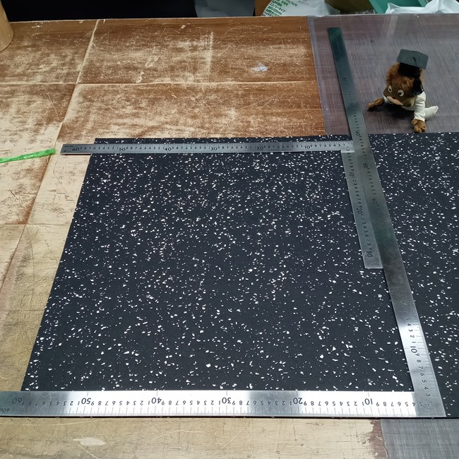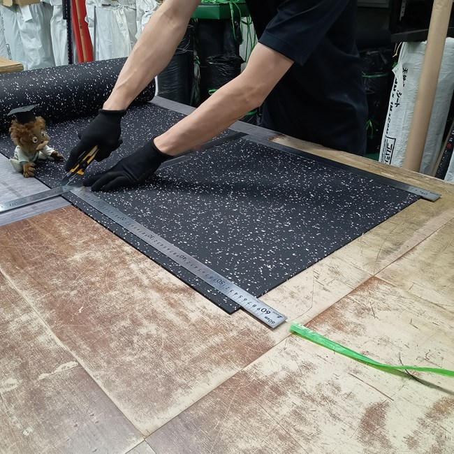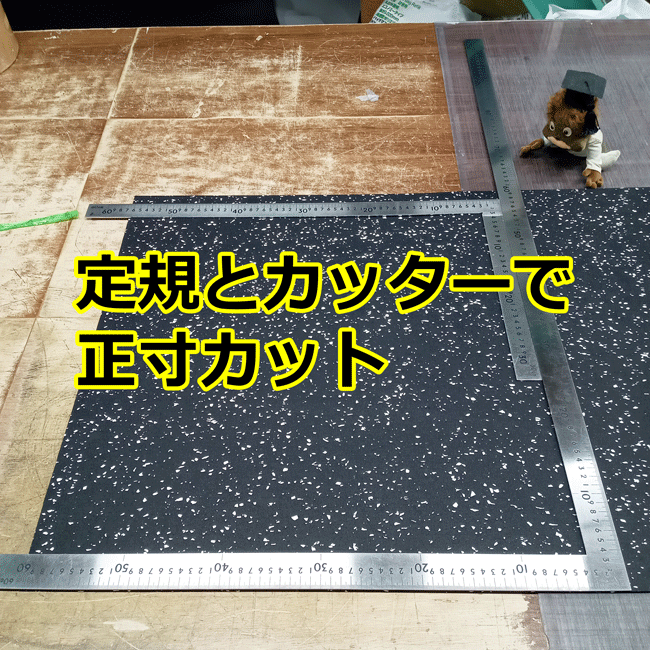 正寸カット=ピタリの寸法でカットを狙うことがあります。ゴムは伸縮がありますので、あくまで狙いですし、1000mmを超える寸法では狙いですら曖昧になってしまいます。定規を複数使って正寸を狙ってカットした事例です。
