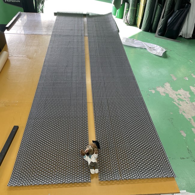 エムエムPVCシートは他のゴムシートと同様に幅カットが可能です。設置寸法にカットされていると、届いてすぐに設置できるので楽です。特に長尺カットは時間と労力が必要なので、私たちにぜひお任せください。