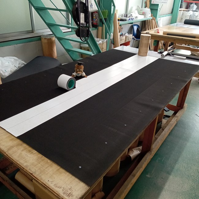 ゴムシートの広い面積全面に両面テープを付けて納品