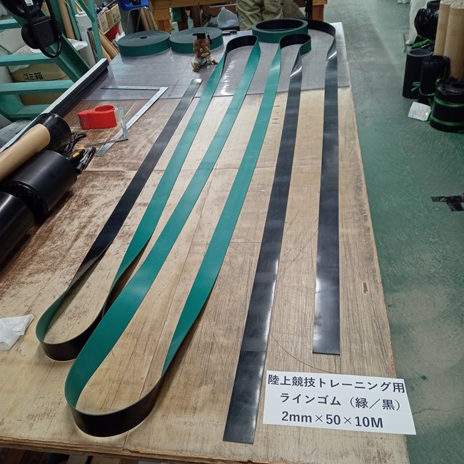 おかしな表現かもしれませんが、ゴムシート.comは陸上専門店ではなく、ゴムシート専門店だからです。私たちはゴムシートを任意の寸法にカットすることを得意としており、材料も潤沢に保有しています。そのため、様々な商品を扱っておられる販売店様より安価に大量にご用意できるのです。ただし、ゴムシートから製作できる商品に限ります。ゴムなら負けない自信がありますが、樹脂や金属は扱っていませんので、ゴム以外を材料とする製品の場合はもしかしたら総合的に扱っておられる販売店様に優位性があるのかもしれません。