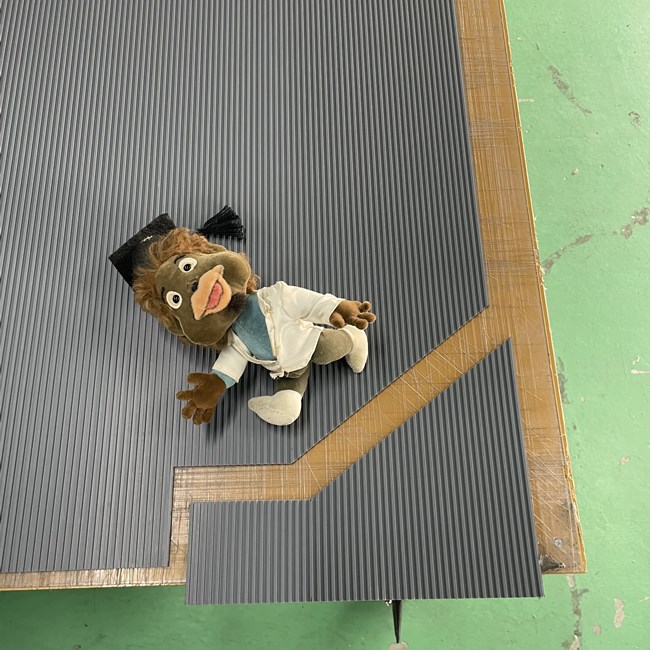 圧倒的に多いのがエレベーターマットです。本記事で掲載している写真もエレベーターマットの事例です。エレベーターの中は正方形や長方形ではなく、主に入口側が複雑な形状になっています。操作盤がある部分や出入口部分です。これらは現場でも切ることはできますが、労力と時間を考えたときにご依頼いただくケースが非常に多いです。すごく複雑な場合はゴムシート.comが保有する工作機械を使って切ることもございます。