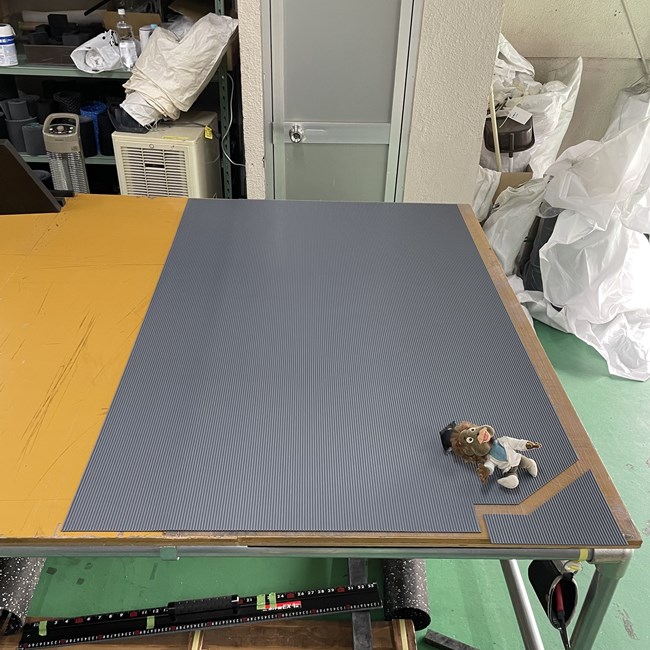 ゴムシートを敷く際に柱があるなどでその部分だけ「切り欠き」が必要な場合があります。そのような場合でも寸法をお教えいただきましたら寸法通りにカットいたします。カットされた状態でお手元に届きますので敷くだけで設置完了です。