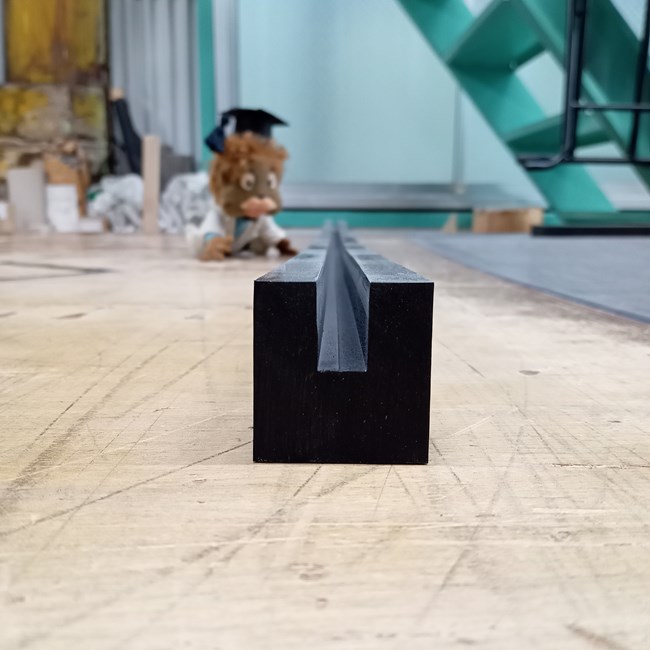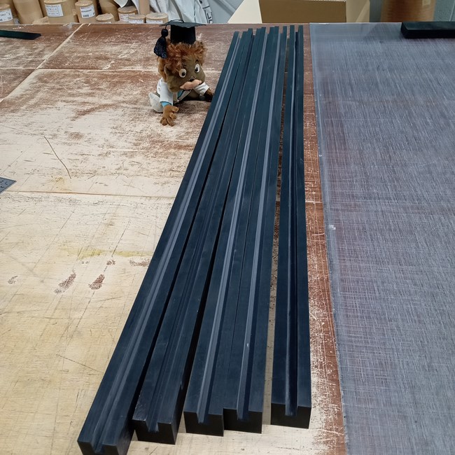 規格サイズにはない溝付ゴムを1コから製作いたします。金型(口金)を使わないので数量が少ないとかなり割安で、納期も短縮できます。1本のゴム板から切削してご指示の寸法通りに製作いたします。