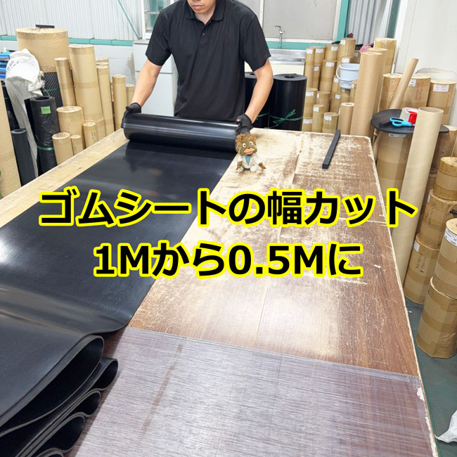 ゴムシートの幅カット 1Mから0.5Mに