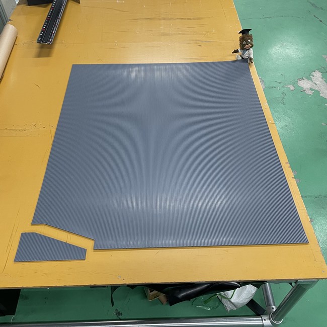 エレベーターのカゴ内に設置するエレベーターマットが好評です。マンションやオフィスビルなどの場合は厚さ3mmを使っていただくことが多いですが、工場内のエレベーターでは心もとないので厚さ5mmもご用意しております。