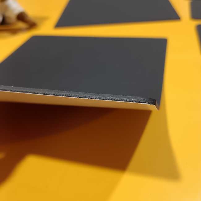 両面テープ付きのゴムシートをご指定の形状にカットするオーダーカットも可能です。両面テープはオーダーをいただいてから貼りますので、テープがないものと比較して納期がかかりますが、貼り付けて日数が経過することによる経年劣化を最小限に抑えることができます。