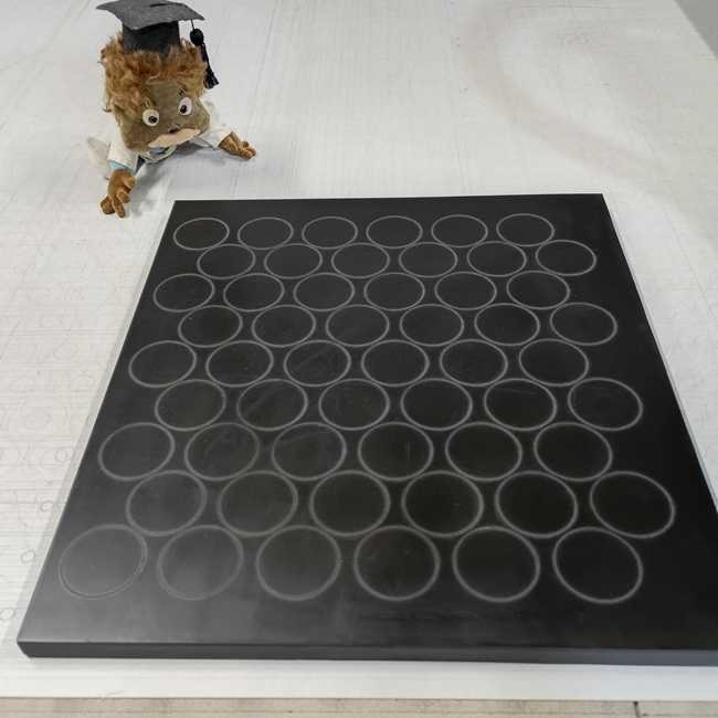 ゴムシート.comは円を正確に切るためにほとんどの場合で工作機械を用います。お客様の現場で正確に円形カットを行う場合は厚さ3mmくらいまでであればコンパスカッターで切ることができるかもしれませんが、それ以上の厚さになると困難で、今回事例の15mmはほぼ無理だと思います。