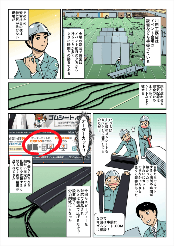 イベント会場のケーブル養生 ゴムシートをオーダーカットで現場納品