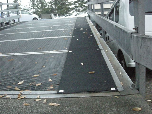 団地内の立体駐車場の歩行路を明確にするためと同時に滑り止め目的にゴムマットを使っていただきました!