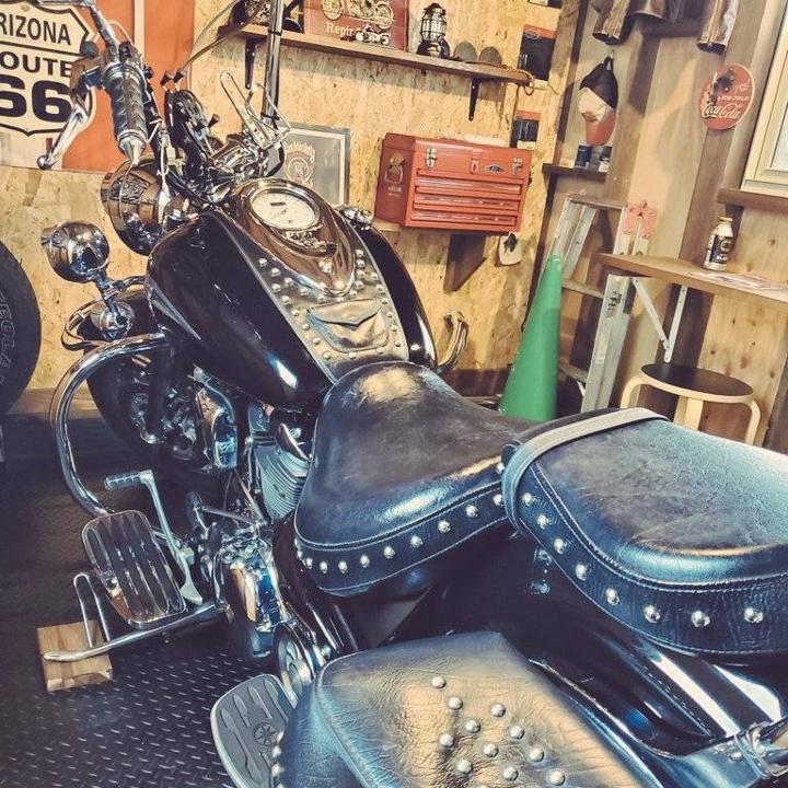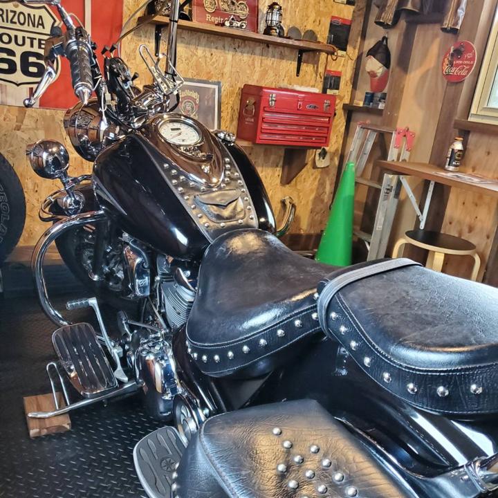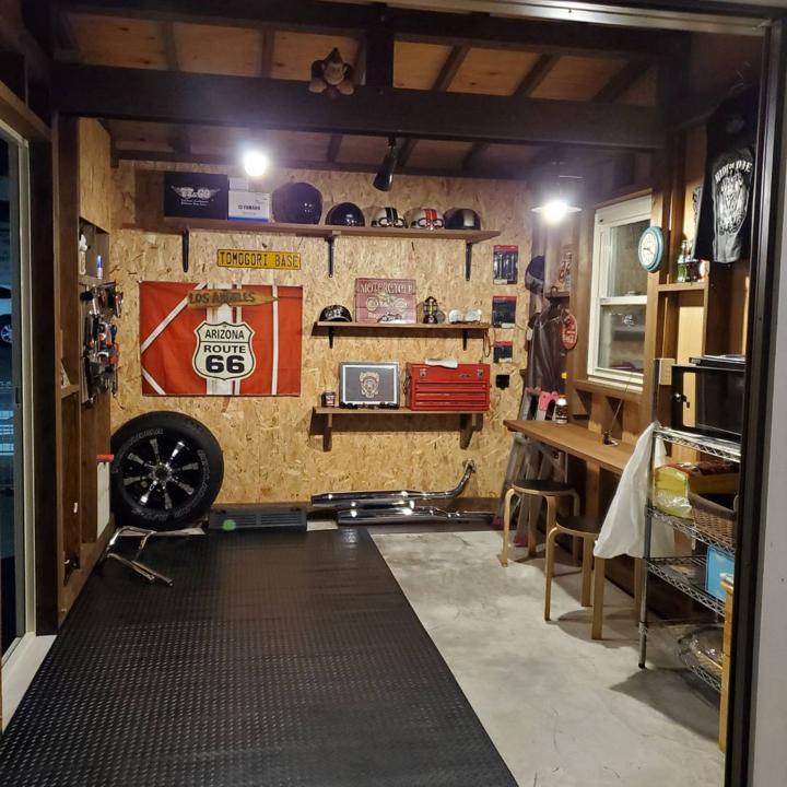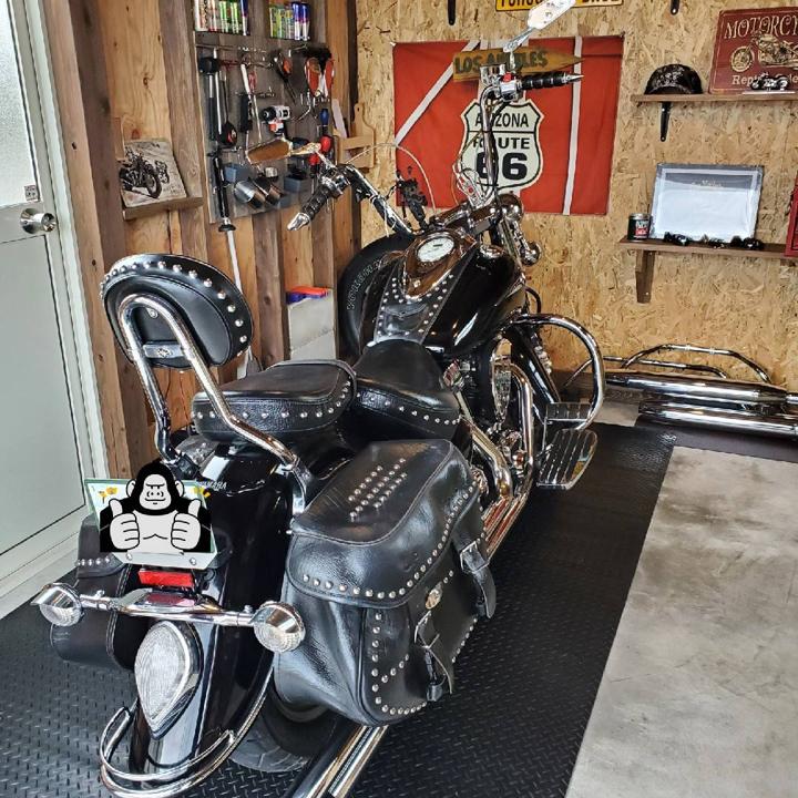 自宅ガレージ内のバイクマット