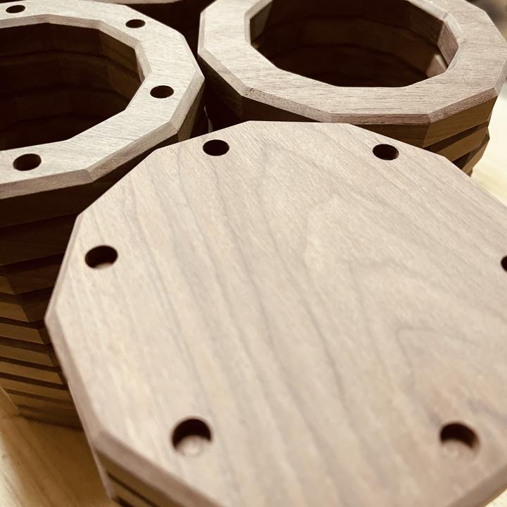厚物(天然ゴム)厚物(合成ゴム)厚物丸形+中抜き技術サンプル4丸形の中抜きですが、穴から外に向かって緩やかにテーパーをつけた加工です