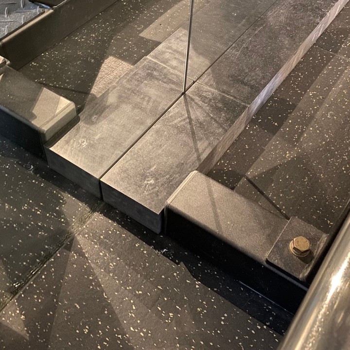トレーニングジム内の鏡と機材の間に置き、鏡が割れないように