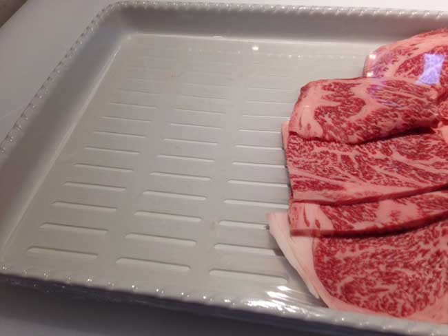 バットに直接お肉を置かずに緑の肉芝(と言うらしいです)を敷いてから、