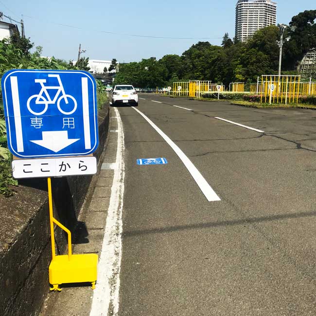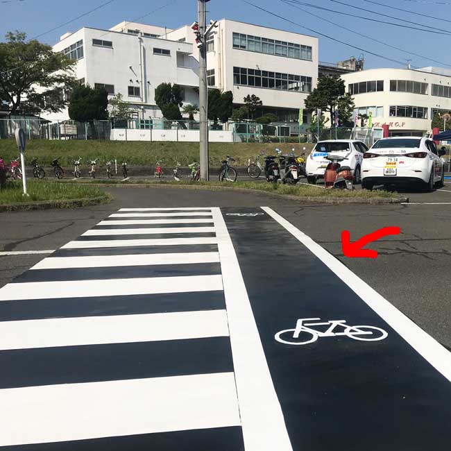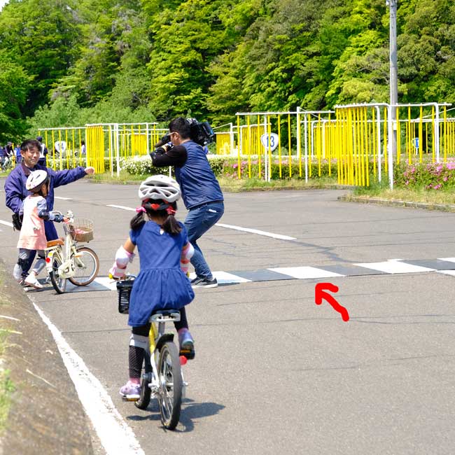 交通安全教室にて道路の実線として使用 ゴムシートの使用事例写真