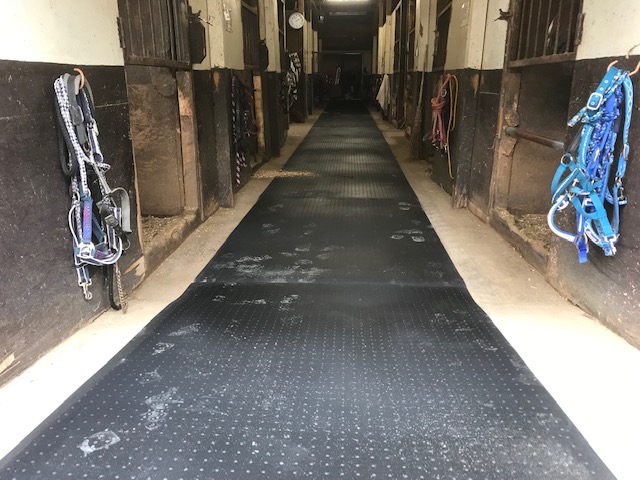 厩舎/馬房の通路に滑り止めとしてゴムマットを使っていただきました。