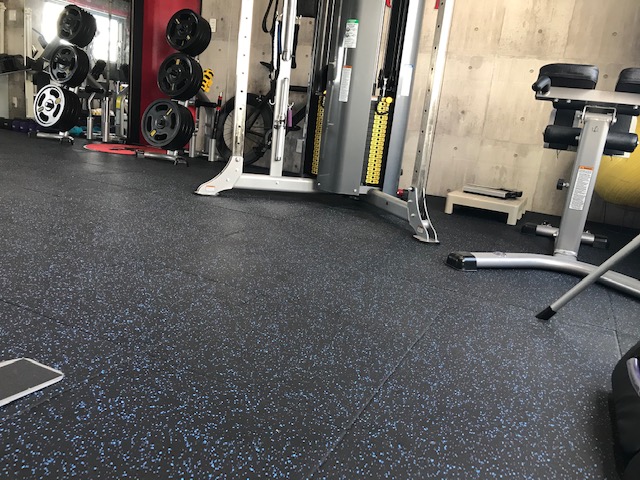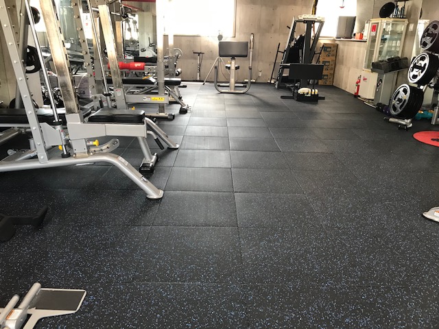 トレーニングジム内の床面保護のゴムマットにスポーツジム専用ゴムマットを使っていただきました。