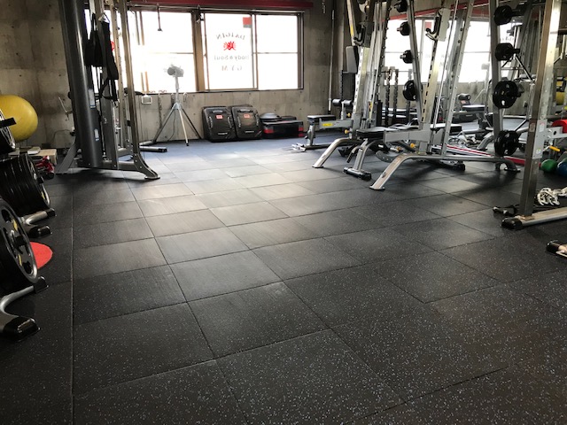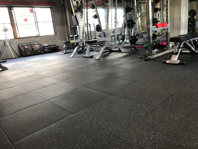 トレーニングジムの床面にスポーツジム専用ゴムマットを使っていただきました
