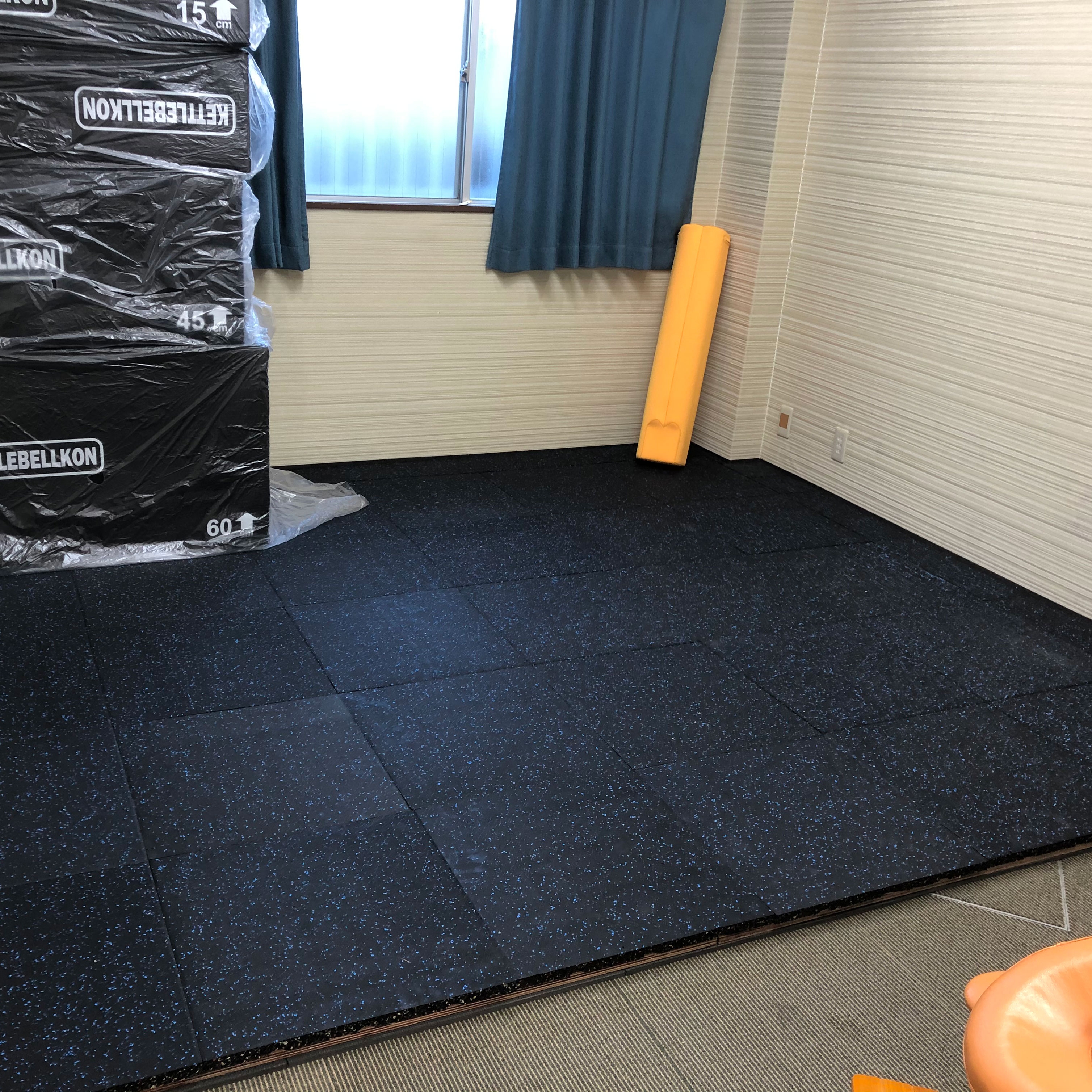 整骨院の床の一部にゴムマットを敷いてトレーニングルームにされたい、というお問い合わせがきっかけでスポーツジム専用ゴムマットを納品させていただきました。