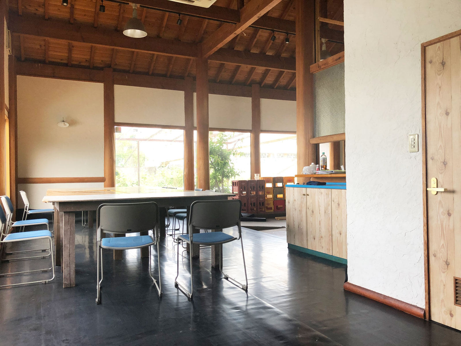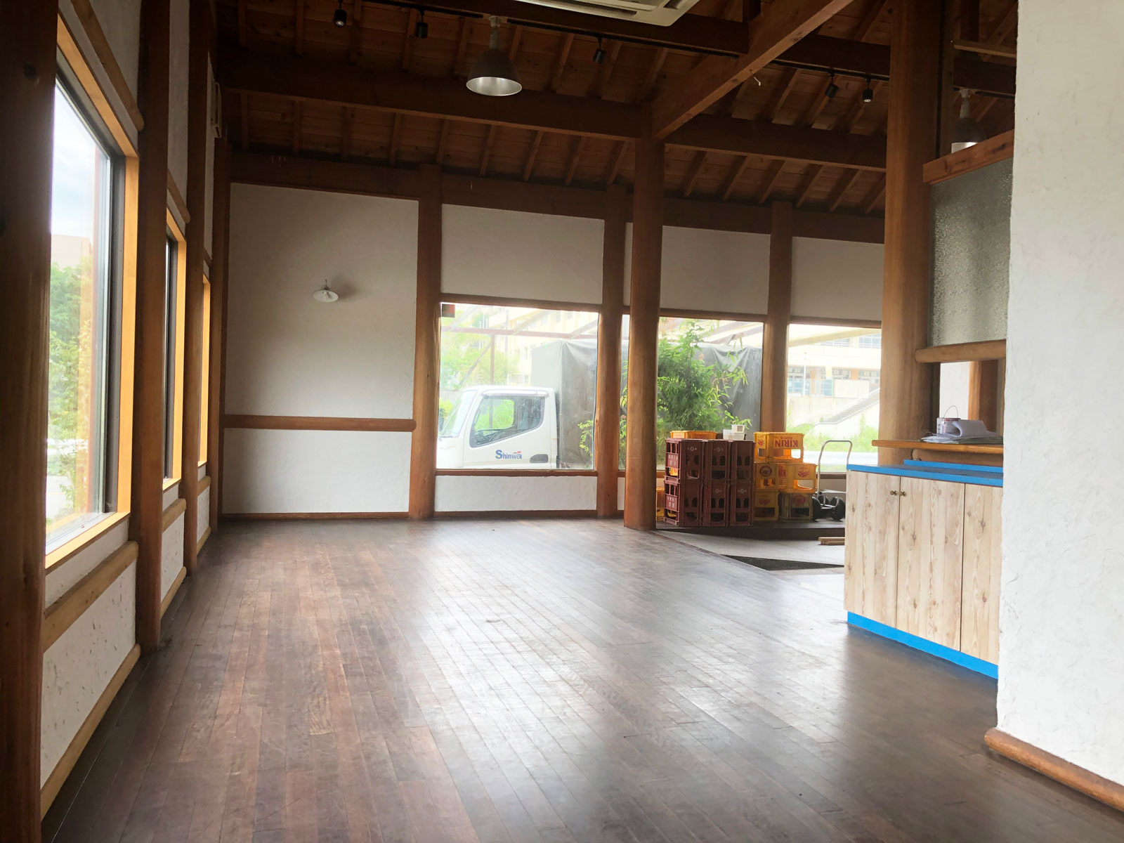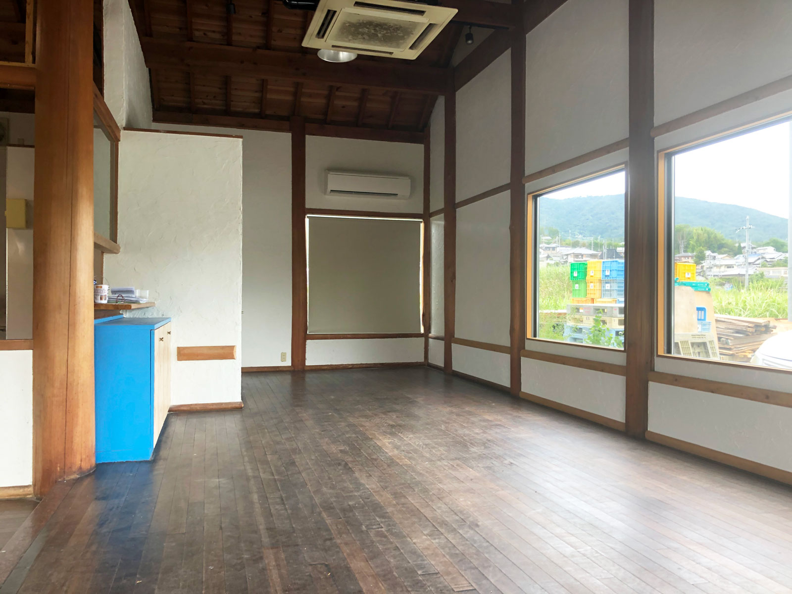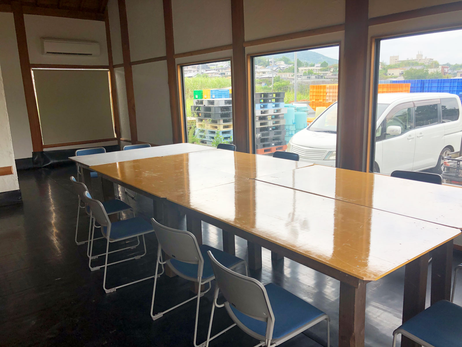 打ち合わせスペース周辺だけ、土足でそのまま上がれるようにゴムマットをお使いいただきました。