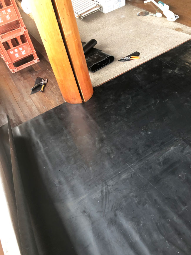 室内の1部分を土足で入れるようにするため、その部分にゴムシートを敷いていただきました。