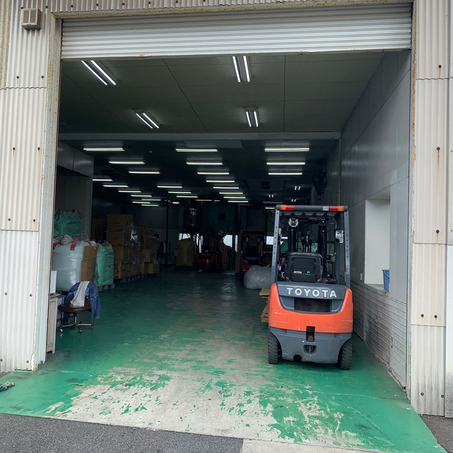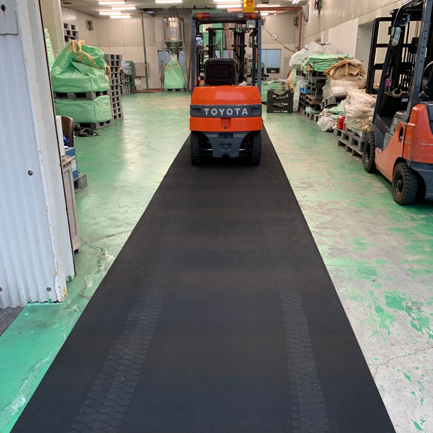 工場内シャッター付近が雨で濡れ、リフト走行が危険なため、滑り止め目的にゴムマットを敷いていただきました。