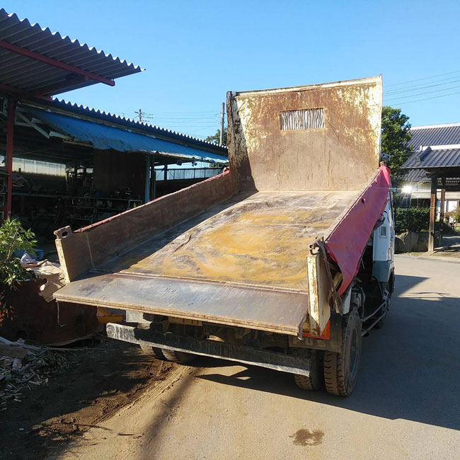 ▽ゴムマットを敷く前のダンプの荷台