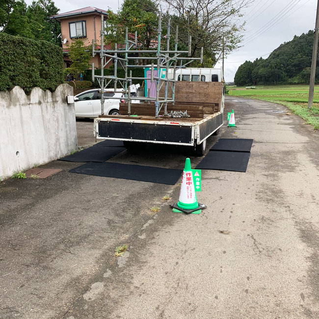 工事現場におけるトラック周辺から施工場所までの導線を養生するためにゴムマットをお使いいただきました。