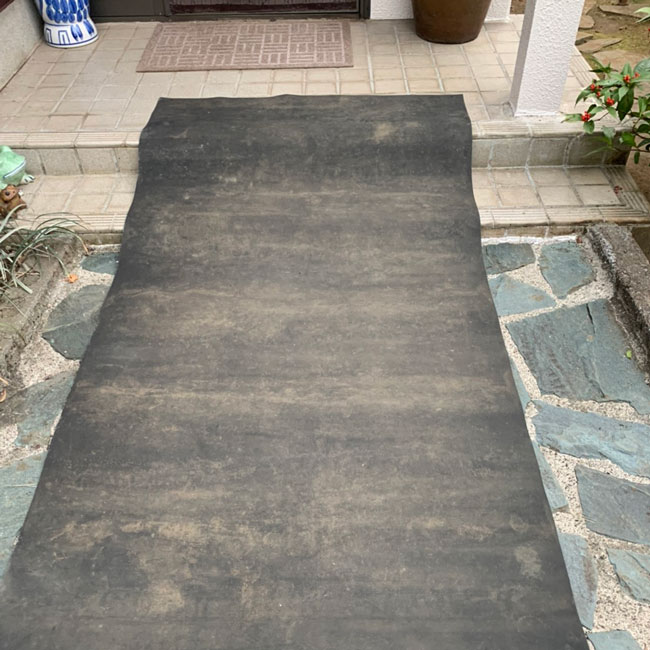 合計24枚のご注文でしたので、写真以外の場所でも養生としてお使いになられたのだと思います。通常のゴムだと雨で濡れると滑りやすくなって危険なこともあるのですが、エンボスゴムは濡れても滑り止めの効果がありますので安全です。先にサンプルをお取り寄せいただいて、材質確認をしていただいてましたのでそのあたりも評価していただいたのだと思います。