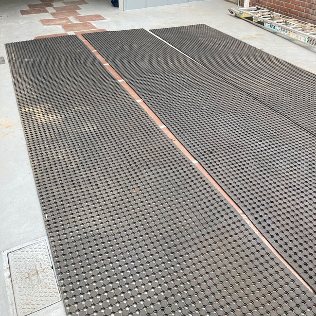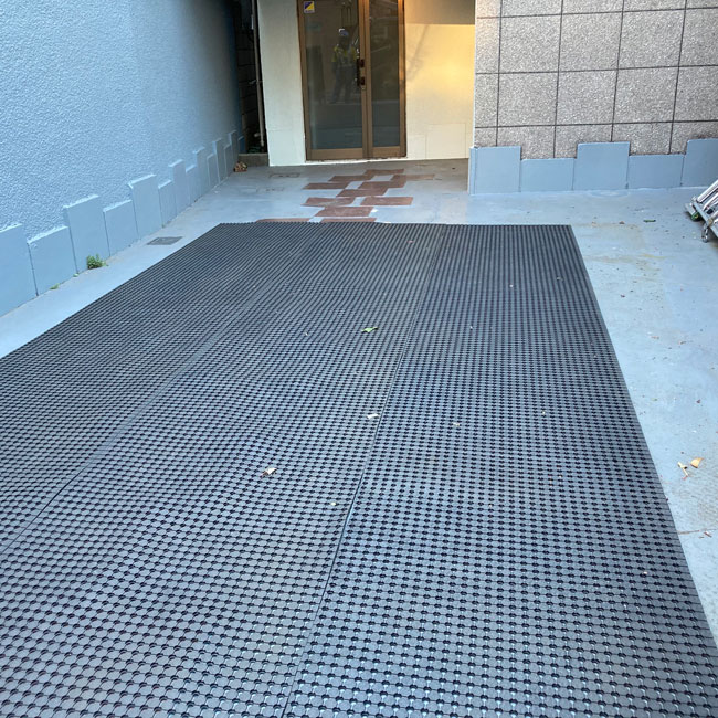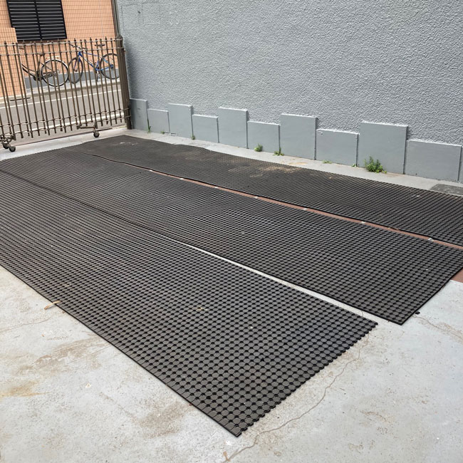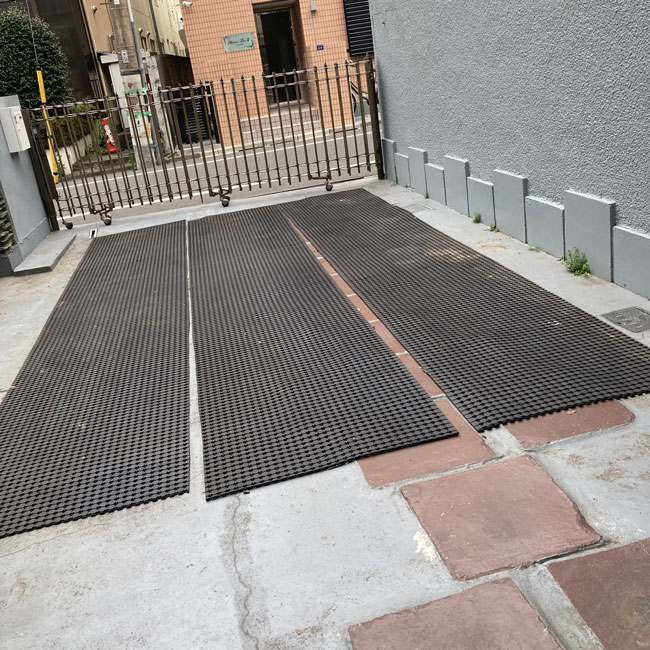 駐車スペースの養生に穴あきゴムシート