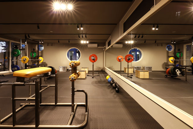 お写真を送っていただきましたが、かっこよい雰囲気で驚きました。広い清潔な室内に無骨ながらカラーアクセントのある器材がかっこよさをより強調していますね。