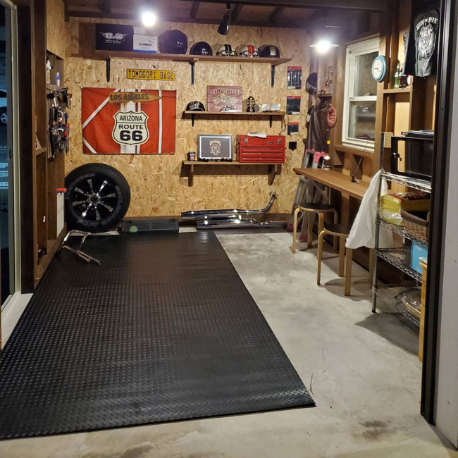 T.W様 ご自宅バイクガレージのコンクリート保護にゴムマットを使っていただきました