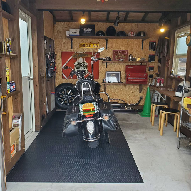 ご自宅のバイクガレージの床面保護にてっぱんゴムをお使いいただきました。