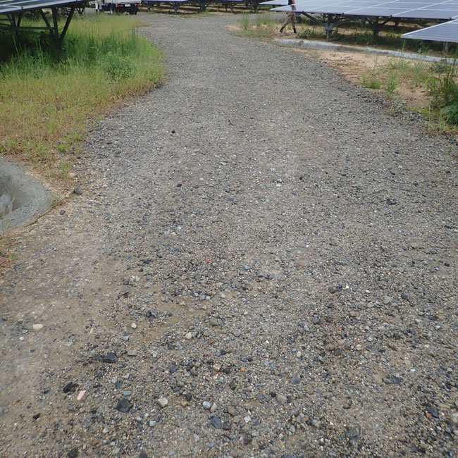 ▽ 工事後の写真 作業道の端から端まできっちりとゴムシートが埋め込まれています。