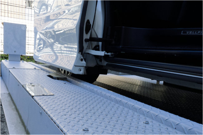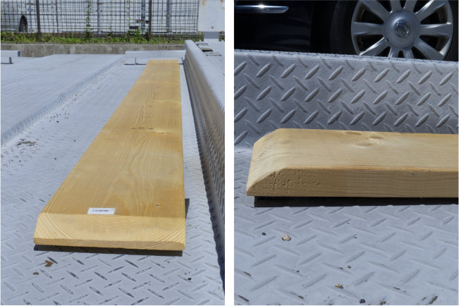 タイヤの下に「立体駐車場かさ上げゴム」を敷くことでドアに溝縁が干渉せず、スムーズな開け閉めができるのです。