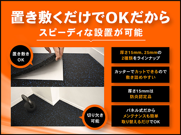 スポーツジムの防音・防振に最適な商品として仕上げました。