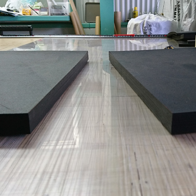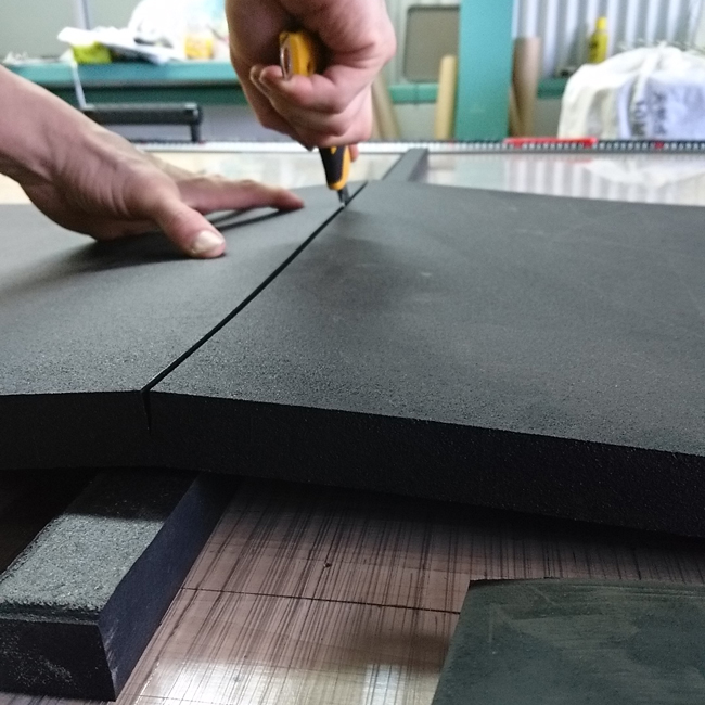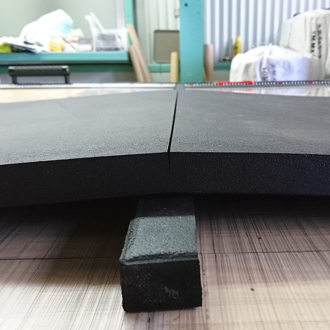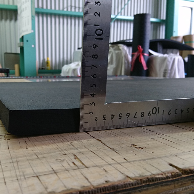 今回はそのリサイクルゴムシートの25mm厚をカットします。