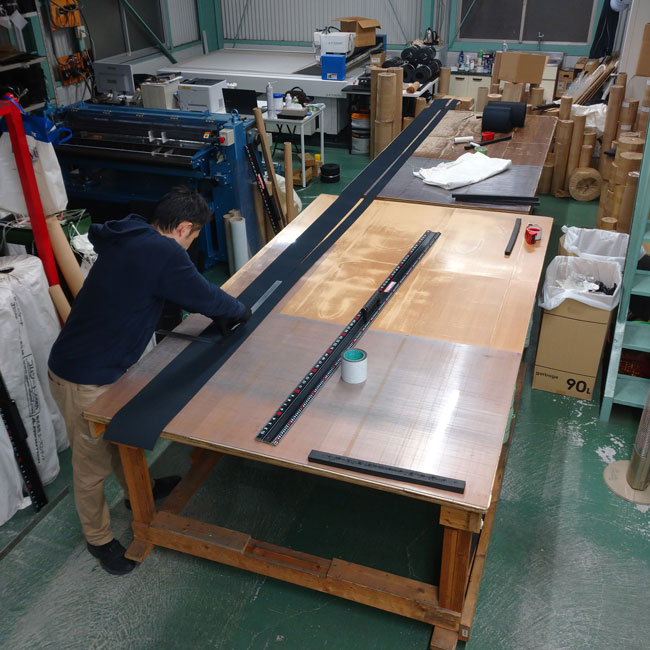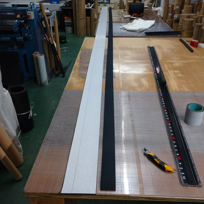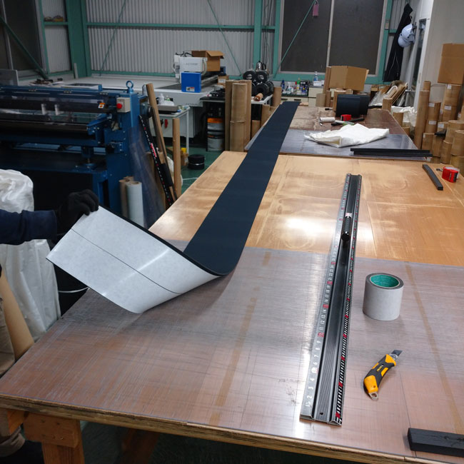 ゴムシート.com内でテープを貼っている様子をご紹介します。
